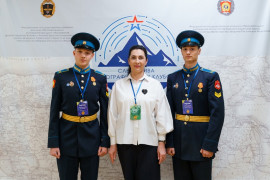 Команда Молодёжного клуба РГО «САРМАТ» СПКУ: кадет 10 «Г» класса Ярослав Мишин и кадет 10 «А» класса Дмитрий Князев. Руководитель команды – преподаватель географии СПКУ Елена Витальевна Щербакова.