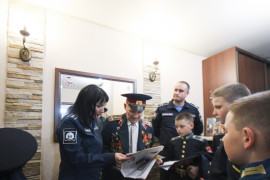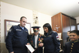 Воспитанники 5 «Д» класса Ставропольского президентского кадетского училища вместе со своим классным руководителем Аидой Александровной Перехода и Алексеем Михайловичем Спириным побывали в гостях у ветерана Великой Отечественной войны Дмитрия Назаровича Скоробогач. 6 ноября Дмитрию Назаровичу исполнилось 97 лет, пятиклассники поздравили его с днём рождения.