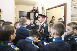 Ветеран был очень рад приходу юных гостей и поздравлениям от кадет. Он с удовольствием рассказывал о своей судьбе, делился своими воспоминаниями, показывал ребятам свой фотоальбом, рассказывал о самых трудных и самых счастливых минутах своей жизни, подчеркнув, что никогда не жалел о том, что выбрал путь защитника Родины.