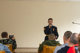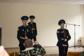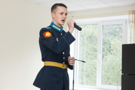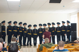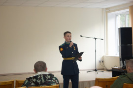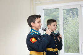 Стихотворение Роберта Рождественского «Война» прочитал кадет 6-х классов Захар Заболотский. Его однокурсник Данияр Янгалычин спел «Балладу о солдате».
