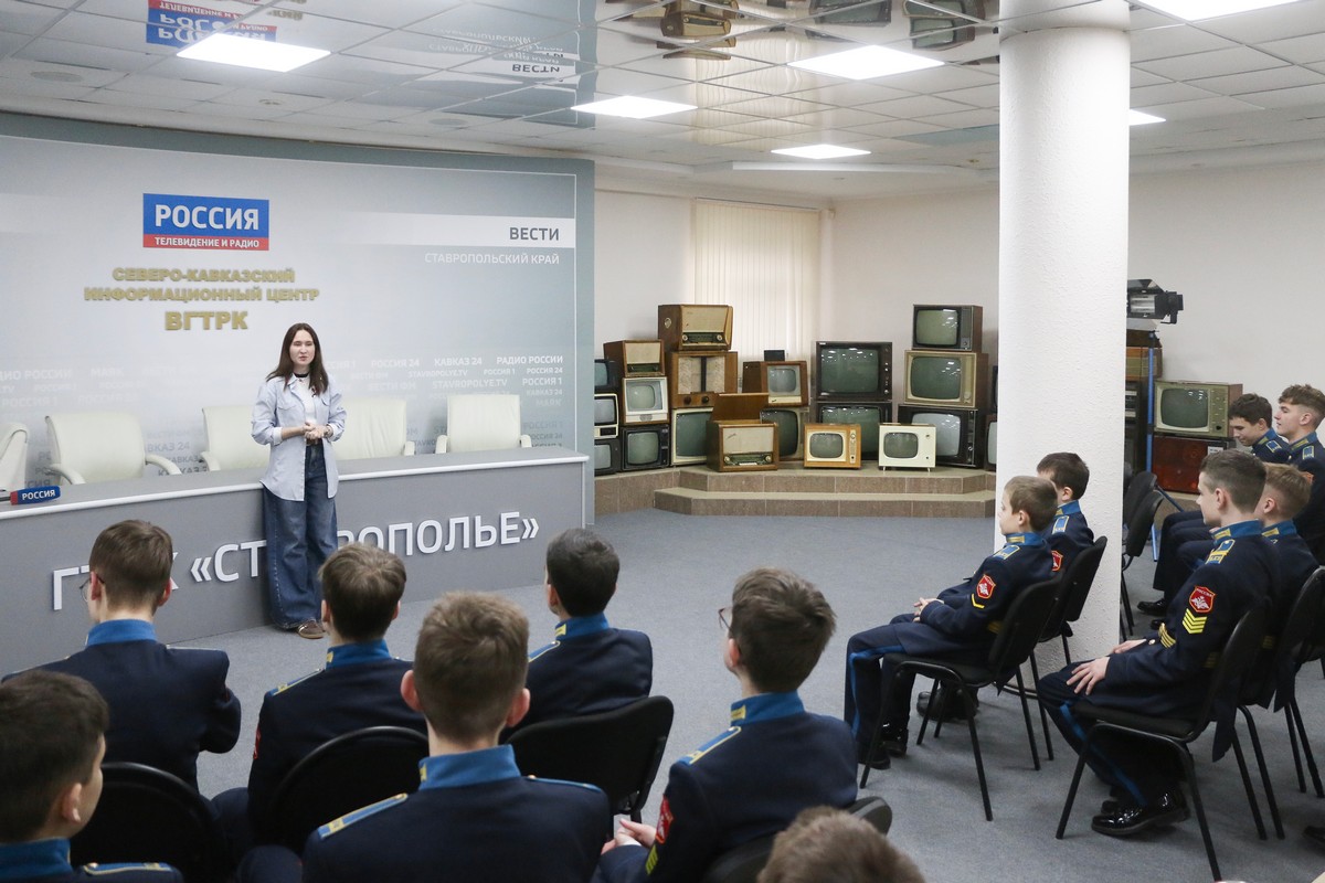 Воспитанники Ставропольского президентского кадетского училища, увлеченные журналистикой и фотографией, получили уникальную возможность заглянуть за кулисы регионального телевидения. В рамках фестиваля «Научный февраль СПКУ – 2026» ребята, занимающиеся по программам дополнительного образования «Основы редакторского и книгоиздательского дела» и «Фотостудия» под руководством педагога Анны Сергеевны Максименко, посетили редакцию Государственной телерадиокомпании «Ставрополье».