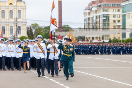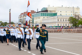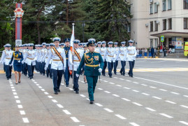 Всего по площади Ленина в парадном строю прошли около двух тысяч человек и свыше трёх десятков единиц боевой техники. Среди парадных расчетов - сводные роты и батальоны из числа военнослужащих Ставропольского гарнизона, курсанты Ставропольского филиала краснодарского института МВД РФ, казаки, кадеты СПКУ и АДЕККК, юнармейцы.
