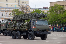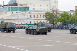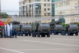 Затем на площадь выехала механизированная колонна современной боевой техники, состоящей на вооружении Российской Армии. В этом году – это более 30 единиц: бронеавтомобиль «ТИГР-М», «БТР-80» и «БТР-82-А», зенитная установка, противотанковый ракетный комплекс «Штурм-С», оперативно тактический ракетный комплекс «Искандер-М», спецавтомобиль «ЗСТС Ахмад», автомобили радиационной и химической разведки и другая техника.