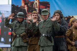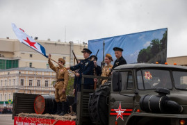 После на площади началась театрализованная часть парада: появились передвижные диорамы с актёрами. Декорированные автомашины демонстрировали главные исторические вехи Великой Отечественной войны 1941-1945 годов и времени восстановления страны. В этот раз была добавлена ещё одна «страница» истории – основные события специальной военной операции.