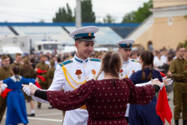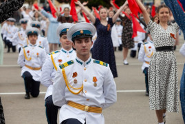Завершился парад «Вальсом Победы». Под военные песни в вальсе закружились около тысячи парней и девушек, в том числе и кадеты 11-х классов Ставропольского президентского кадетского училища.