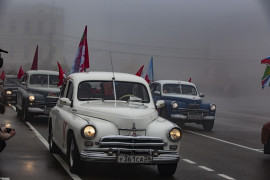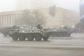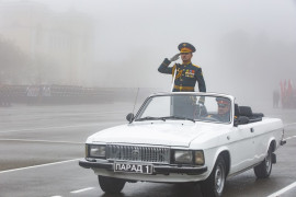 Затем на площадь выехала механизированная колонна, в этом году – это более 30 единиц техники: спецавтомобили «Рысь», системы залпового огня «Ураган», системы «Град», ракетный комплекс «Искандер-М» и другая военная техника, представляющая боевую мощь нашего региона и страны.