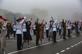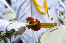 Поcле официальных и торжественных поздравлений вся площадь погрузилась в тишину, нарушаемую лишь звуком метронома. Объявили минуту молчания.