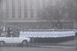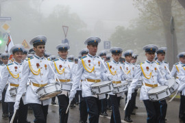 Пешие парадные расчёты различных родов войск Ставропольского гарнизона маршировали по площади Ленина. Среди них и парадный расчёт кадет учебного курса 10-х классов, возглавляемый заведующим отделом воспитательной работы училища, кандидатом педагогических наук, подполковником запаса Борисом Николаевичем Савченко.