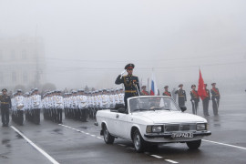 Всего по площади Ленина краевой столицы в парадном строю прошли более полутора тысяч человек и свыше трёх десятков единиц боевой техники.