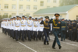 Заместитель начальника училища по воспитательной работе Эдуард Владимирович Корабельников зачитал приказ Министра обороны РФ, Героя России, генерала армии Сергея Кужугетовича Шойгу: