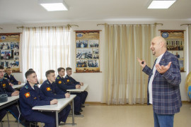 Начальник научно-исследовательского управления Ставропольского государственного педагогического института, кандидат исторических наук, доцент Дмитрий Владимирович Пикалов рассказал кадетам 10-11 курсов о возможностях самоорганизации политических систем. Кадеты узнали почему одни империи оказывались в большей степени способными оказывать сопротивление даже превосходящему их противнику, а другие сдавались, в чём был просчёт Ганибала и Наполеона.