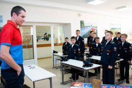 Кадеты задавали гостям много вопросов о том, сколько тренировок и по сколько часов необходимо в день, как нужно питаться спортсменам, как совмещать учёбу и спорту. Гости с удовольствием отвечали и делились своим жизненным опытом.