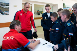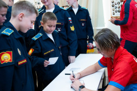 Завершилась беседа общим фото на память и автограф-сессией. Затем состоялся мастер-класс со сборными командами по плаванию с представителями ЦСКА в бассейне СПКУ.