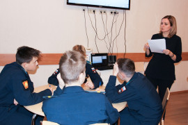 После чего для рассмотрения методов и способов запоминания материала педагог-психолог предложила кадетам изучить свои индивидуально-психологические особенности: модальность восприятия (аудиалы, визуалы, кинестетики), хронототип (совы, жаворонки, аритмики) и т.д. Во время обсуждения полученных результатов кадеты смогли увидеть свои сильные стороны и рассмотреть, как можно использовать их при заучивании необходимой информации.
