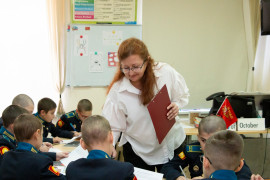 Как можно способствовать повышению мотивации к изучению истории и культуры России средствами иностранного языка? Преподаватель английского языка Орлова Елена Ивановна знает ответ на этот вопрос. Поэтому она провела открытый урок английского языка в 6Д классе по теме «Календарь воина». Целью урока было научить воспитанников второго года обучения систематизировать информацию в виде интеллект-карт с помощью знания истории и изобразительного искусства.