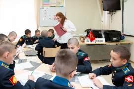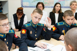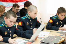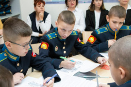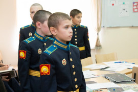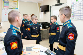 В заключение урока кадеты в форме диалога поделились своими мыслями о будущей профессии. Стоит заметить, что все воспитанники выбрали для себя профессию военного: лётчика, врача, переводчика, артиллериста, связиста.