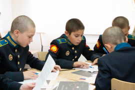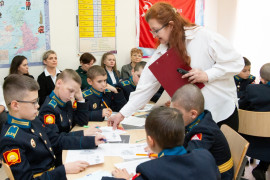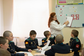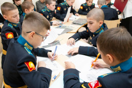 В самом начале урока кадеты узнали, что такое Mind Maps (интеллект-карты), разделились на две команды и составили «Календарь воина». Одна команда - календарь Дней воинской славы Российской Федерации. Воспитанники соединяли портреты выдающихся военачальников с картинами исторических событий. Другой команде нужно было составить календарь профессиональных военных праздников, используя эмблемы и флаги видов и родов войск.