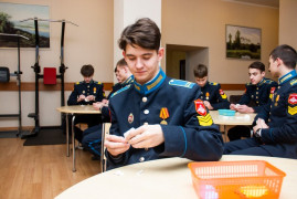 Далее кадеты разделились на пары, для проведения интервью: один выполнял роль корреспондента, другой – интервьюируемого. При этом нужно было представить, что берут интервью у очень пожилого человека (80-90 лет), и, несмотря на это имеет абсолютно нормальное мышление. Основная задача предполагала представить себя взрослым опытным человеком и подвести итог жизни. Этот вызвало у кадет, как затруднения, так и интерес, так как представить себя глубоковозрастным стариком и подвести итог жизни оказалось не просто. Такое перевоплощение навело кадет на размышление о будущем, как же надо прожить, чтобы остаться счастливым и не стыдится за прожитые годы. Заполнение сосуда жизни ярко продемонстрировало ребятам, что жизнь будет полной только тогда, когда духовные ценности будут основой, а все остальные события будут лишь эпизодами, которые только разнообразят и наполнят яркими красками жизнь.