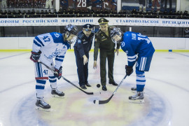В этом году вместе с кадетами училища почтить память погибших, пришли мальчишки из ХК «Динамо» (Ставрополь)-2006, которые по окончании траурной церемонии показали мастер-класс по хоккею с шайбой, сыграв в формате 3х3 между собой, а на «десерт» показали шоу по исполнению штрафных буллитов.