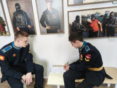 Кадеты 5-ого учебного курса 9-х классов Ставропольского ПКУ побывали на передвижной выставке «На службе Отечеству и народу» ставропольского художника Юрия Орлова. На выставке были представлены картины художника, рассказывающие о непростом, но очень важном деле – Служении Отечеству.