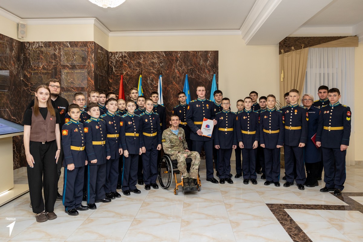 В преддверии Дня защитника Отечества с Первыми Ставропольского президентского кадетского училища встретился заместитель председателя комитета по делам ветеранов Великой Отечественной войны, участников специальной военной операции (СВО) и их семей, ветеранов боевых действий, военной службы, казачества и взаимодействию с воинскими подразделениями Ставропольской городской Думы – Александр Олегович Луганский.