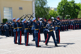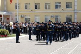 Завершилось торжественное построение парадным маршем личного состава Ставропольского ПКУ и Аксайского кадетского корпуса, общей фотографией на ступеньках родного училища и взлетевшими вверх кадетскими фуражками в знак окончания учёбы.