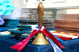 Затем состоялся обязательный и трогательный ритуал – обмен памятными подарками между выпускниками и пятиклассниками. Первокурсники традиционно подарили одиннадцатиклассникам Ставропольского президентского кадетского училища символ российского выпускника – школьный колокольчик с атласной лентой цвета Российского Флага. А их старшие товарищи взамен каждому пятикласснику на память вручили брелоки с логотипом СПКУ.