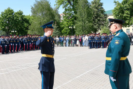 - Вспоминаю себя 7 лет назад в этом же строю. Такие же ребята, перед которыми открыты все границы. Вы – кадеты Ставропольского президентского кадетского училища, вы – будущее России! Не бойтесь принимать решений! Не бойтесь делать шаг вперед! Бездействие порождает страх, а действие порождает уверенность! Чтобы победить страх, нужно просто сделать первый шаг навстречу переменам. Вам дважды уже приходилось принимать решения – это поступление в СПКУ, а теперь – выбор военного вуза, где вы продолжите своё обучение. Сегодня пишется новая историческая глава России, и именно вам ее дописывать! Так что творите, мечтайте и живите во благо Родины!