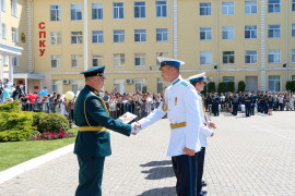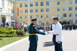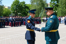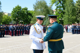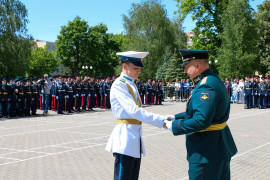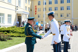 - Дорогие друзья, уважаемые выпускники! Сегодня для вас очень важный момент в жизни. Вы окончили президентское училище. Вы здесь обрели не только знания, но и закалку, вы твёрдо усвоили, что мощь кадетского братства в единстве. Сейчас вы делаете первый шаг в свою будущую жизнь! Желаю вам удачи в достижении своих целей! Уверен, что, продолжив учёбу в высших военных вузах, затем, работая на благо Отечества, вы принесете нашей Родине огромную пользу!