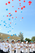 Вверх взлетела сотня красных, синих и белых воздушных шаров, символизируя путь к вершинам мечты каждого выпускника.