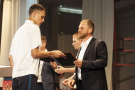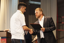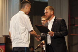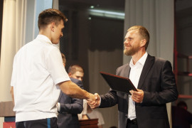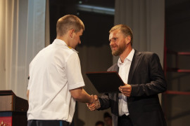 Поздравить выпускников с успешным окончанием училища пришёл Председатель комитета Думы Ставропольского края по образованию, культуре, науке, молодёжной политике, средствам массовой информации и физической культуре Виктор Викторович Надеин. Тридцати одному воспитаннику, лучшим из лучших одиннадцатиклассников, которые отличились в учёбе, спорте, науке, творчестве – он вручил почётные грамоты от комитета Думы.