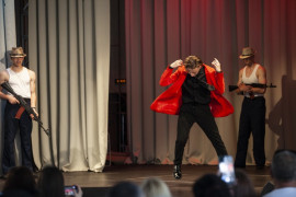 Затем началась концертная программа. В канву театрализованного представления по мотивам трилогии фильма «Крёстный отец» гармонично вплетались творческие номера, которые подготовили кадеты и педагоги 7 курса. Концертная программа совместила в себе юмор, иронию, прекрасную музыку (не обошёлся концерт без виртуозного музыкального сопровождения оркестра СПКУ), танцы, поэзию.