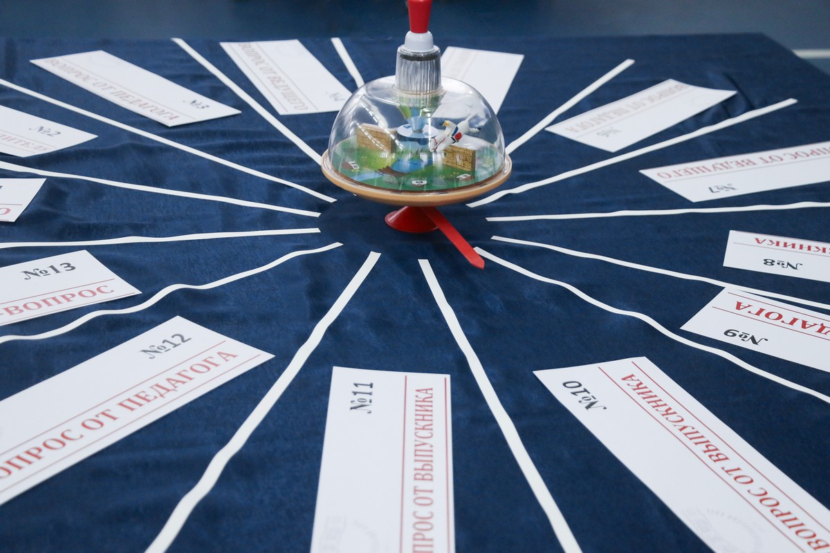 В ходе игры вопросы выбирал волчок. Первый запуск доверили начальнику училища Вячеславу Валерьевичу Преснухину. Стрелка указала на вопрос от выпускника 2023 года, а ныне курсанта Черноморского высшего военно-морского орденов Нахимова и Красной Звезды училища имени П.С. Нахимова Андрея Винцентьева. Андрей – капитан команды «Скрытый потенциал», которая была первопроходцем в городской игре «Вершина» и стала первым чемпионом от СПКУ в этом турнире. Вопрос, конечно же, был про море – ведь ещё будучи кадетом, Андрей увлекался не только интеллектуальными играми, но и морским делом.