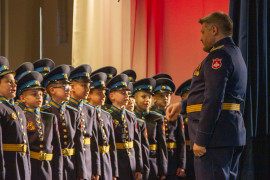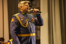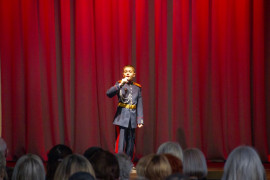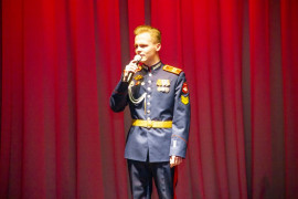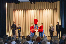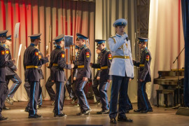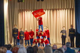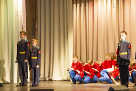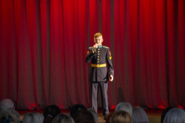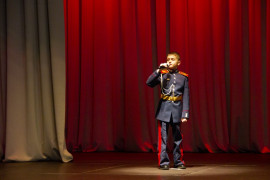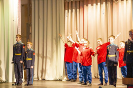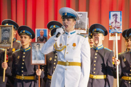 Открыл концертную программу кадет 7 «Б» класса Артём Кравченко стихотворением «Ответ сыну». Затем воспитанник 5 «А» Аксайского кадетского корпуса Ярослав Кирин исполнил песню «Прадедушка». Стихотворение «Баллада о красках» прочёл кадет 7 «Б» Хасан Калицев. Вокальный номер продолжил концертную программу. Максим Моргунов из 7 «Б» класса АДЕККК исполнил песню «Рисуют мальчики войну». С композицией «Глядят на нас фронтовики» его сменили воспитанники 6 «Е» класса Ставропольского ПКУ. Александр Алекторов (7 «Б») выступил со стихотворением «Баллада о танке «Т-34». Затем концерт продолжился вокальными номерами. Песню «Горячий снег» исполнил Андрей Марголин (7 «А»), песню «Да в саду дерево цветет» спел хор АДЕККК. Певцов сменили танцоры – с хореографическим номером «Донские Казаки» выступил ансамбль АДЕККК. Стих «Папе на фронт» проникновенно прочёл Захар Заболотский из 6 «Б» класса. После него на сцене кадет 11 «Б» класса Аксайского кадетского корпуса исполнил песню «Последний аккорд». Затем дуэт кадет 6 «Б» и 6 «Е» классов – Роман Кудряшов и Елисей Пьянков исполнили песню «Месяц май». «Ах эти тучи в голубом!» – так назывался вальс, который блестяще станцевали кадеты 6 «Е» класса Ставропольского ПКУ. Вокализ из кинофильма «Свой среди чужих, чужой среди своих» – с таким номером выступил кадет 7 «Е» класса Ахмад Джапаров, его сменил девятиклассник Иван Мирошников с песней «Бессмертный полк». Продолжилась концертная программа песней «Матерям погибших героев», которую исполнили совместно кадетский хор и оркестр СПКУ. Затем в исполнении солиста оркестра СПКУ прозвучала песня «Поклонимся великим тем годам».