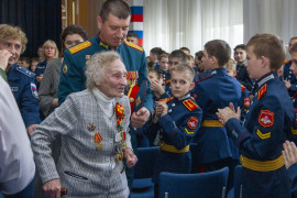 В СПКУ состоялось торжественное мероприятие, посвящённое 78-ой годовщине Победы советского народа в Великой Отечественной войне. На торжественное мероприятие собрались педагоги и воспитанники Ставропольского ПКУ и Аксайского кадетского корпуса, приглашённые почётные гости. Среди них – участница Великой Отечественной войны Любовь Иосифовна Кузнецова.