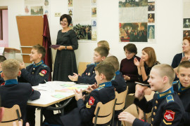 Для совместного обсуждения в классе преподаватель Наталья Викторовна предложила кадетам проблемную тему урока: «Крестовые походы: подвиг или преступление»? Разделив класс на группы, кураторы групп подготовили выступления кадет от имени рыцарей, бедноты, жителей Востока и учёных - хронистов.