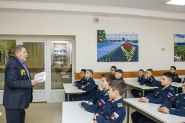 Виктор Николаевич Кравченко – член Союза писателей России с 2006 года, автор книг о декабристах, о Пушкине, о Лермонтове и многих других поэтах и писателях. Он рассказал воспитанникам интересные факты биографии Михаила Юрьевича, о его поездке на Кавказ, о дружбе с Львом Пушкиным, о подарке Нины Чавчавадзе, вдовы А.С. Грибоедова, всем запомнился эпизод ссоры Лермонтова с Мартыновым. Виктор Николаевич приводил много цитат из стихотворений поэта. Кадеты получили большое удовольствие от общения и узнали много нового.