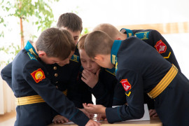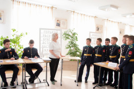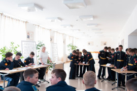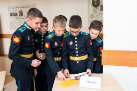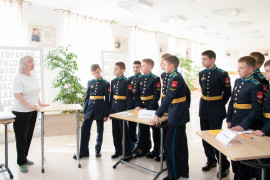 Капитаны команд в 1 туре, играя в анаграмму, составили названия литературных приемов и определили жанр, которому посвящена викторина. Это басня. Кадеты работали не только над сплошным текстом (басни Эзопа, Лафонтена, Крылова), но и с иллюстрациями: искали тропы, формулировали мораль и даже ставили сценки.