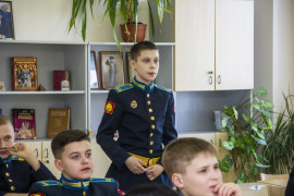 Мария Сергеевна Камышан познакомила семиклассников с историей дня «когда Дунай потёк вспять и небо упало на землю» и вместе с кадетами развенчала известный миф, отражённый в картинах и гравюрах, посвящённых взятию Измаила, о внешнем виде и устройстве знаменитой неприступной крепости. Для кадет стал открытием малоизвестный факт о том, что лучшая крепость XVIII века была построена из земли, а не из камня как принято считать. Также кадеты попробовали себя в роли великого полководца Александра Васильевича Суворова и методом мозгового штурма решали боевые задачи, стоящие перед штурмующими крепость. Например, как послать сигнальную ракету о начале штурма незаметно для врага.