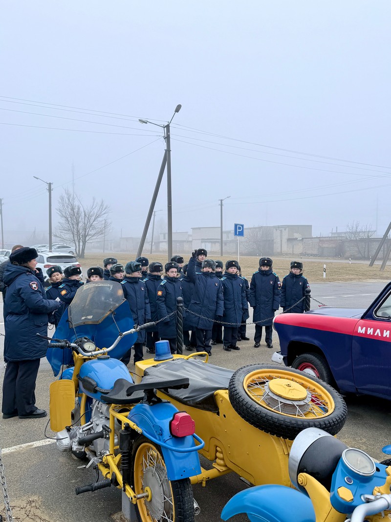 На территории батальона ДПС кадеты посетили выставку ретро автомобилей применявшихся в разное время службы с 1936 года (москвичи, волги, ваз), и современную выставку, где показали «рабочую лошадку» инспектора ДПС – «Шкоду Октавиа», «Хавал» для представителей руководящего состава и мотоцикл «БМВ». Кадетам также показали «Оракул Инсайт» — измерительный комплекс с фотофиксацией нарушений правил дорожного движения (ПДД).