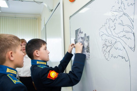 Одной из особенностей занятия было то, что преподаватель математики проводила урок «Путешествие начинается» совместно с кадетом 5 «В» класса Алиасхабом Сатиаджиевым.