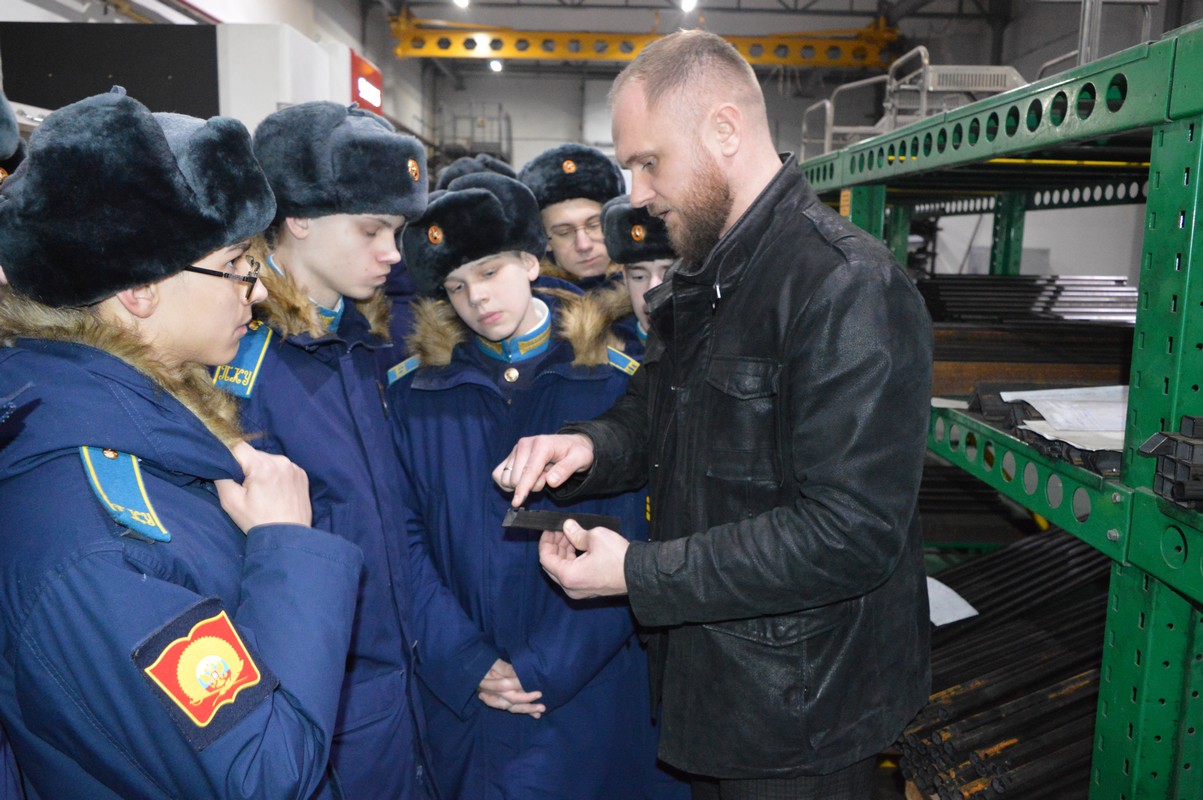 Кадетам рассказали не только об истории создания завода, который строился буквально «с нуля» в послевоенные годы, но и о его сегодняшнем дне. Особый интерес у «юных инженеров» вызвал рассказ о работе предприятия в условиях специальной военной операции – сегодня специалисты завода не только производят технику, но и выезжают в зону СВО для её ремонта.