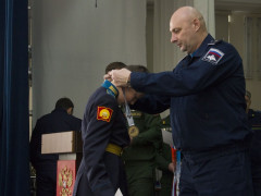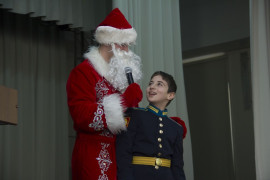 Однако на этом торжественное мероприятие не закончилось. Когда вручили все награды и подвели итоги, на линейку пришёл Дед Мороз. Голос, повадки, шутки, борода – всё как у настоящего! С большим удовольствием «поработал» зимним волшебником для пятиклассников их старший товарищ – кадет учебного курса 11-х классов Борис Белоголовцев. Из своего волшебного мешка он позволил кадетам достать буквы. Если сложить правильно, то получается слово «Каникулы» – самый желанный подарок перед новогодними праздниками!