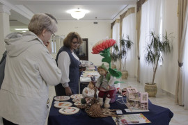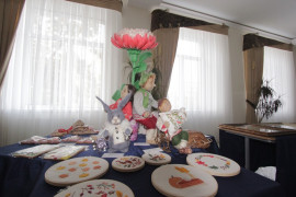 В Ставропольском президентском кадетском училище накануне Дня учителя открылась необычная выставка «Мир увлечений педагога». На выставке было представлено более 50 авторских работ, выполненных в различной технике изобразительного и декоративно-прикладного творчества: живопись маслом, акварель, графика, вышивка крестом, алмазная мозаика, прессованная флористика, скульптурное валяние из шерсти, светильник из изолона, плетение из газетных трубочек, роспись пряников глазурью.