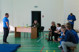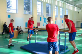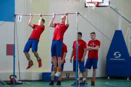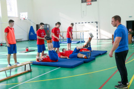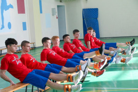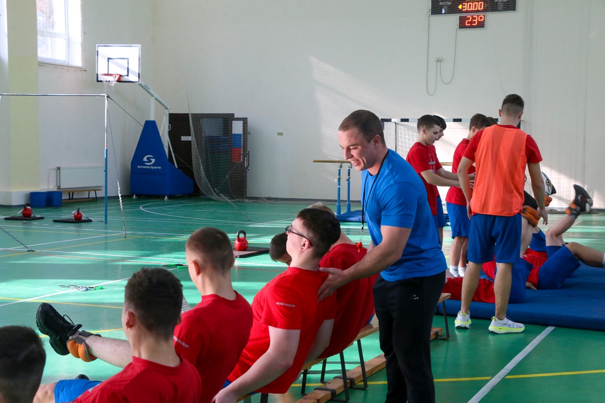 На занятии кадеты выполняли подтягивание и другие упражнения с латексной резинкой, с гантелями, с утяжелителями для ног. Укрепляли мышцы ног, рук и пресса. Резинка создаёт сопротивление, которое увеличивает нагрузку на мышцы при выполнении упражнений. Утяжелители для ног (специальные манжеты с весом, которые закрепляются на щиколотках для увеличения нагрузки во время тренировок) также имеют ряд преимуществ в использовании на тренировках – они помогают ускорить рост и укрепить мышцы, развивают выносливость. А кроме того, делают занятие физической культурой более разнообразным и интересным.