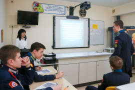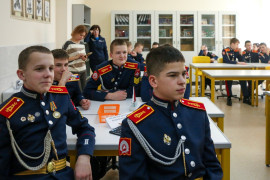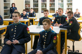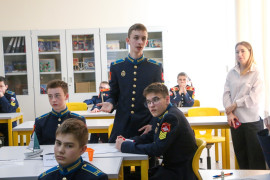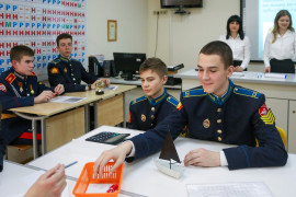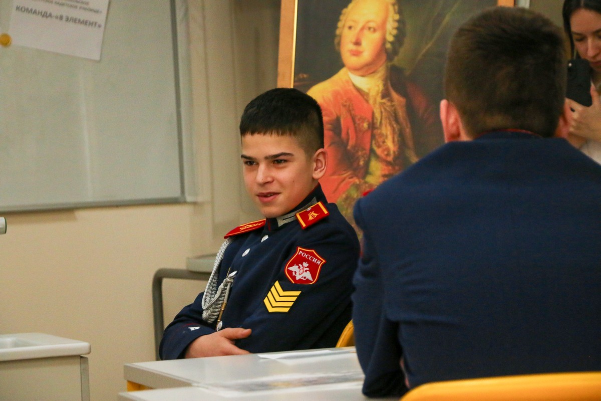 В начале игры кадеты рассуждали о значении образования для человека, говорили о смысле цитаты «Науки юношей питают» великого русского ученого Михаила Васильевича Ломоносова.