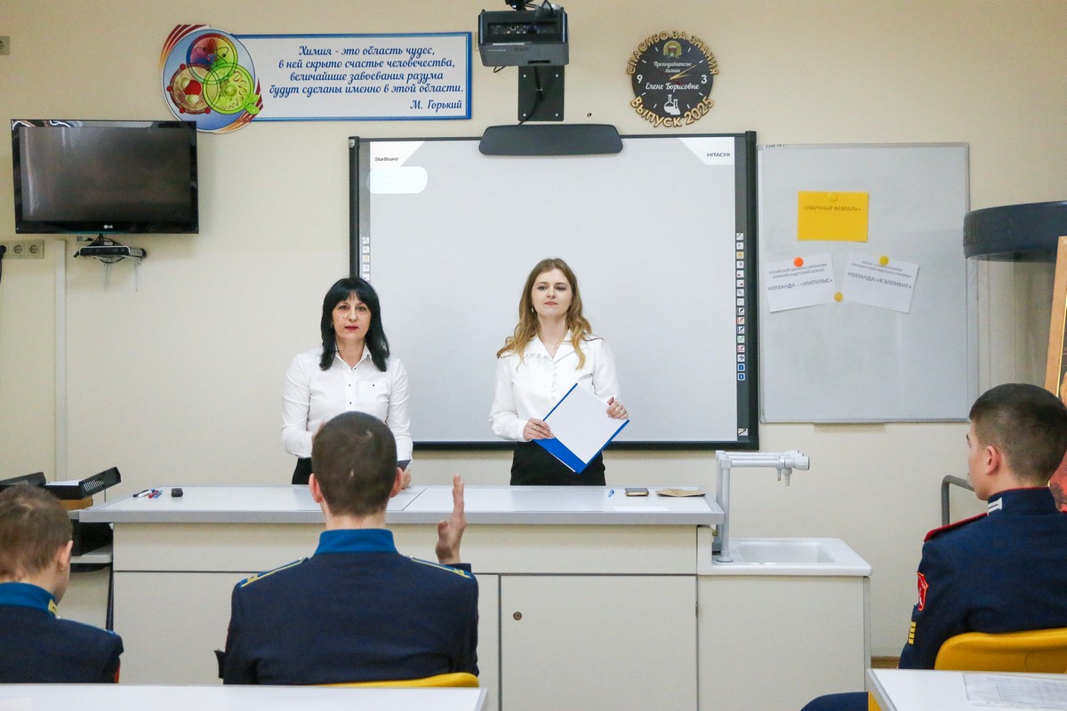 Кадетам пришлось решать самые разнообразные задания из области химии, биологии, физики, математики, угадывали имена ученых по их открытиям.