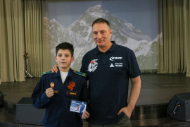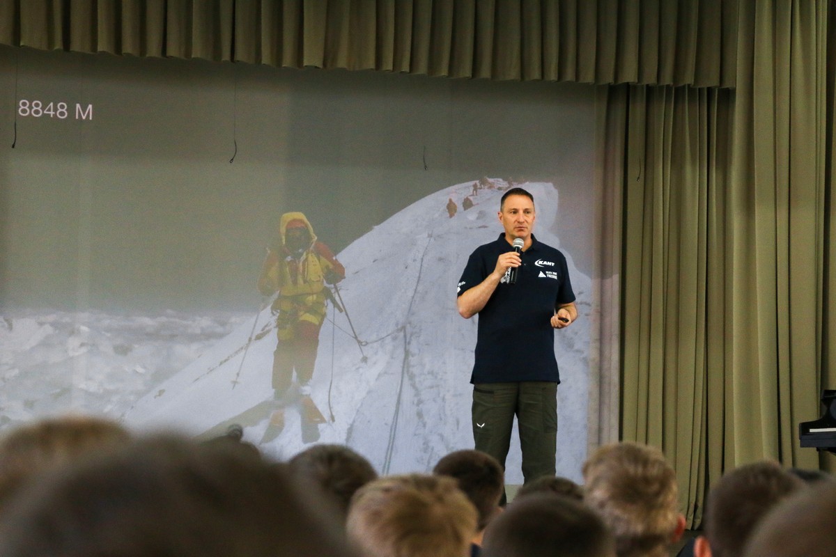 Кадеты узнали, что «Снежный барс» – это почётный титул, который присваивается альпинистам, покорившим пять высочайших вершин СССР. Виталий рассказал о своей экспедиции 2021 года на К2 (Чогори) – вторую по высоте гору мира (8611 метров), а также о восхождении 2023 года на Эверест (8848 метров). Кстати, у Эвереста есть и другие названия – Сагарматха («Мать всего») и Джомолунгма.