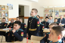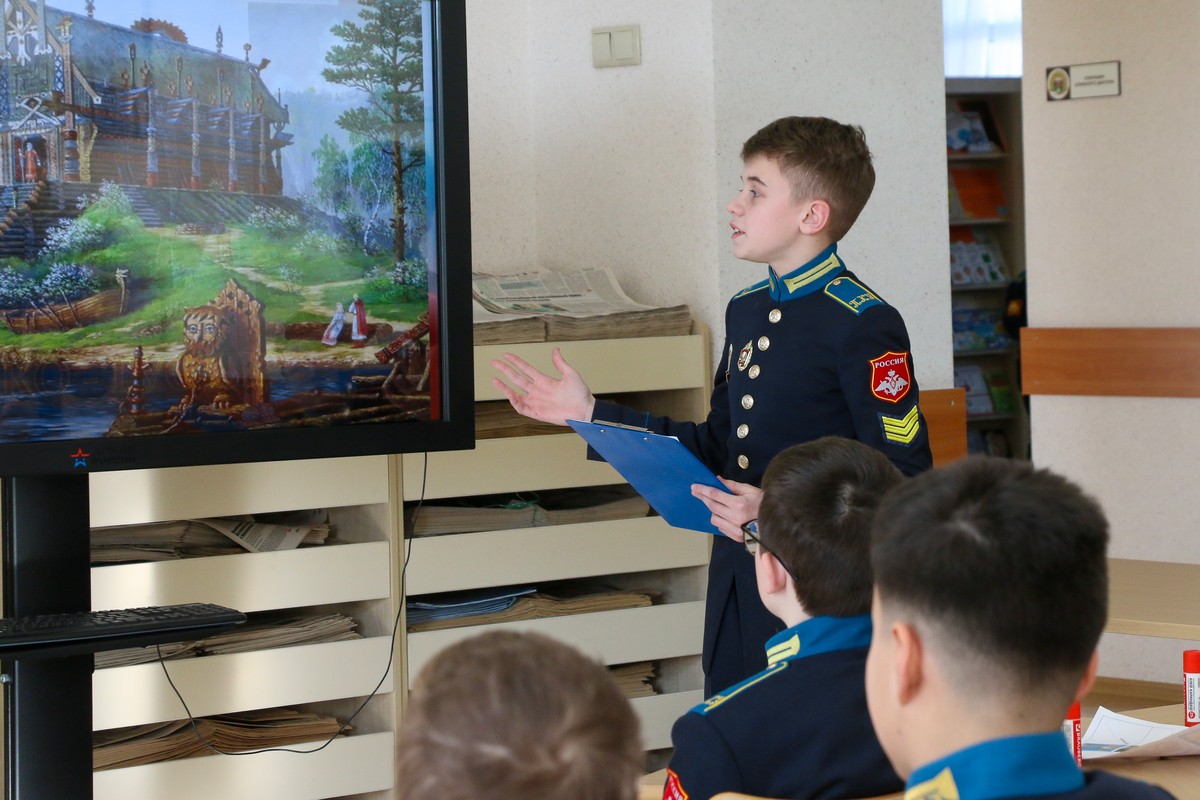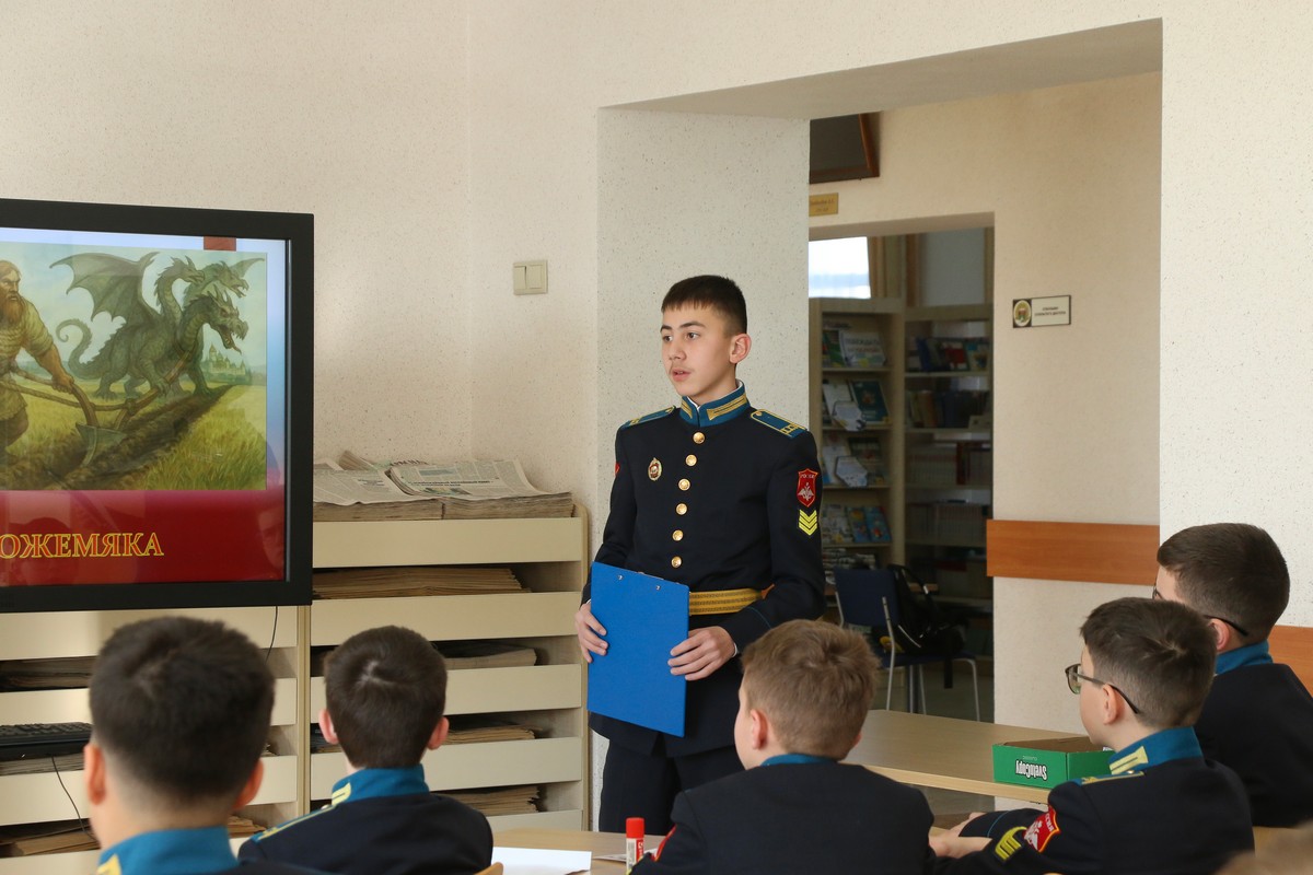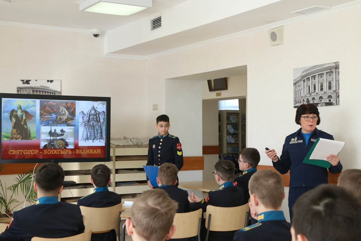 В Ставропольском президентском кадетском училище прошло открытое внеурочное мероприятие, которое заставило семиклассников заглянуть вглубь веков, чтобы найти истоки мужества, чести и верности Родине. Классный руководитель 7 «Б» класса Ольга Александровна Бондаренко провела для своих воспитанников занятие на тему «Богатыри земли Русской» – разговор, соединивший былинную старину и современное понимание воинского долга.