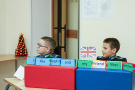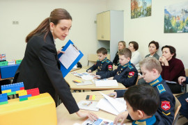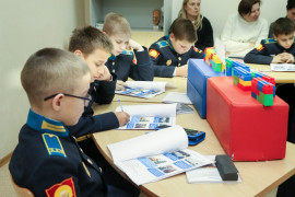 В начале занятия воспитанники узнали о том, что изучаемые ими языки относятся к одной языковой семье и поэтому они так похожи. Полученные знания помогли им сформулировать необычное название урока – Denglisch (от слияния Deutsch и English). Находить сходства и различия в иностранных языках воспитанникам посчастливилось в игровой форме. Кадеты играли в лингвистические снежки, строили грамматические крепости и даже покатались на санях словообразования.